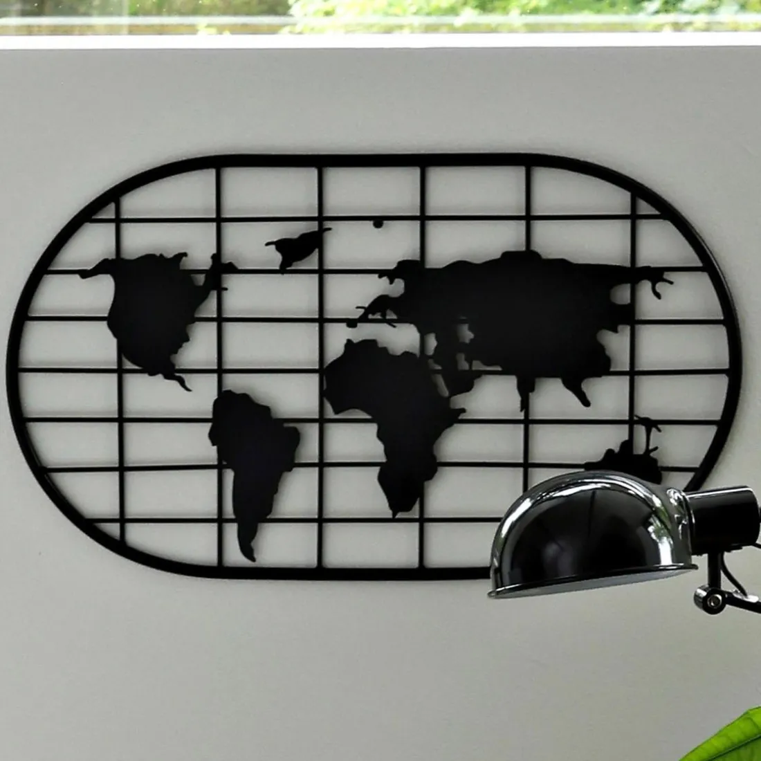 Ajoutez la décoration murale planisphère en métal sur votre mur pour lui donner beaucoup de style, un air de voyage et une touche de style industriel. La décoration murale planisphère sert également de pêle-mêle grâce à son quadrillage sur lequel on peut épingler des photos. Parfaite dans un intérieur jeune et moderne, la décoration murale planisphère saura se faire remarquer sans aucun doute !