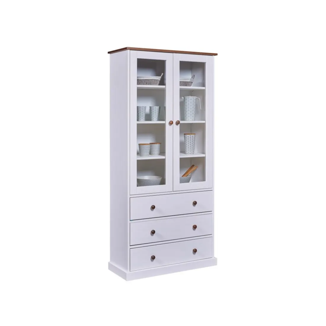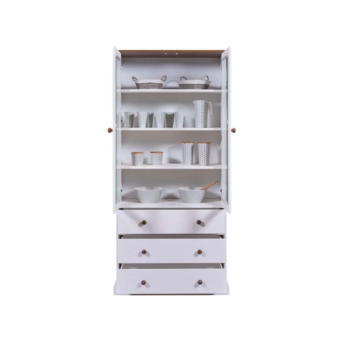 Caractéristiques Vaisselier 2 portes vitrées 3 tiroirs WESTERLAND pin massif vernis blanc