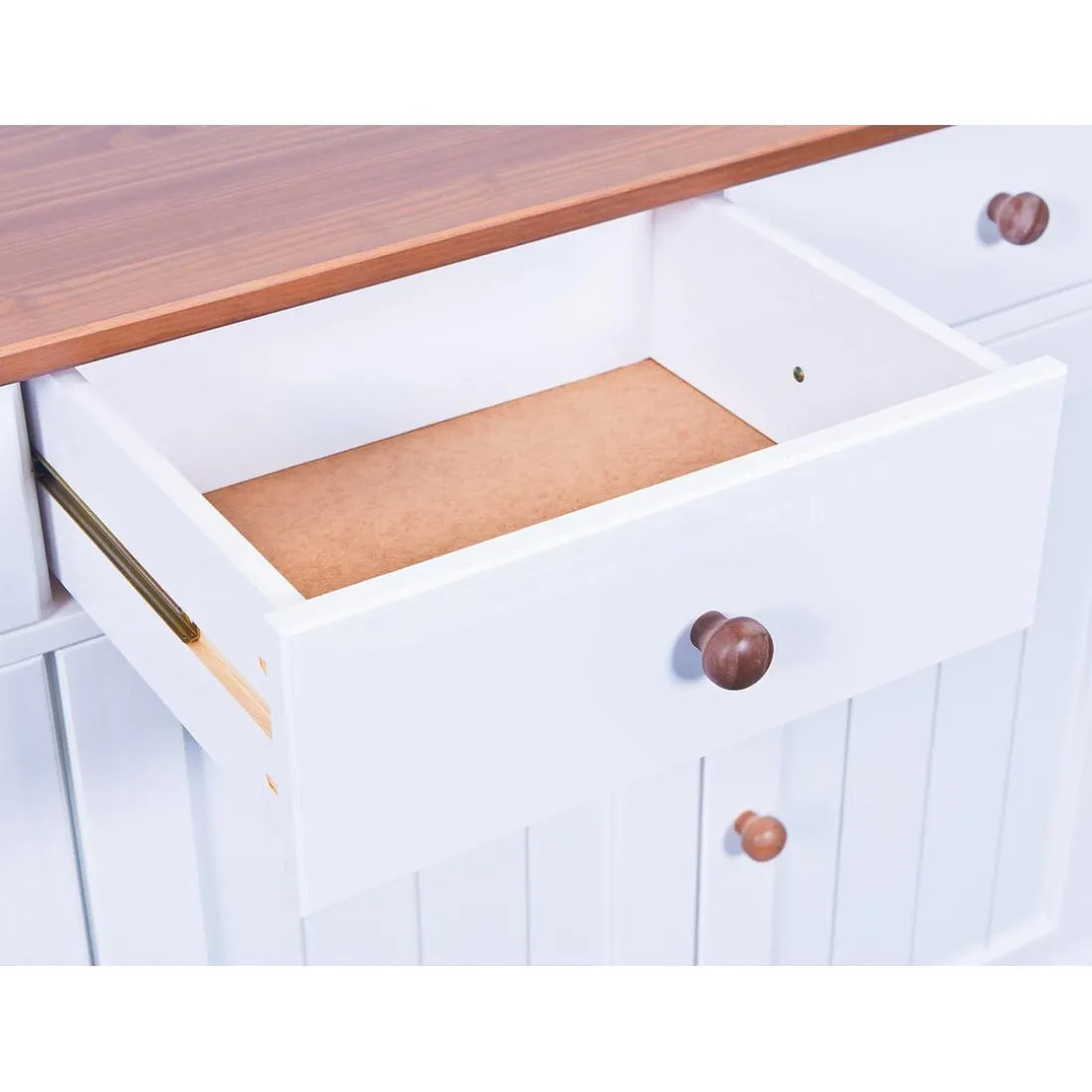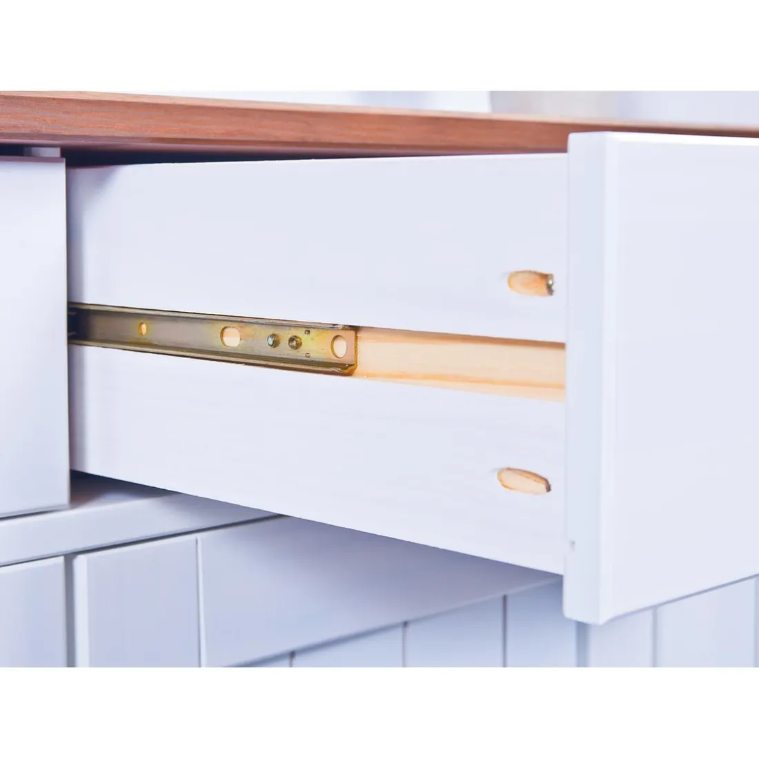 Portes vitrées en verre sécurisé transparent. Les tiroirs sont montés sur des rails coulissants.