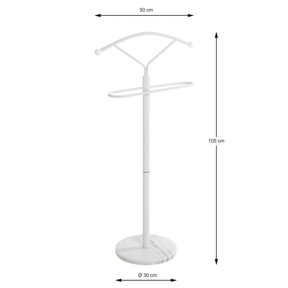 Caractéristiques Valet de chambre métal laqué blanc et pied marbre
