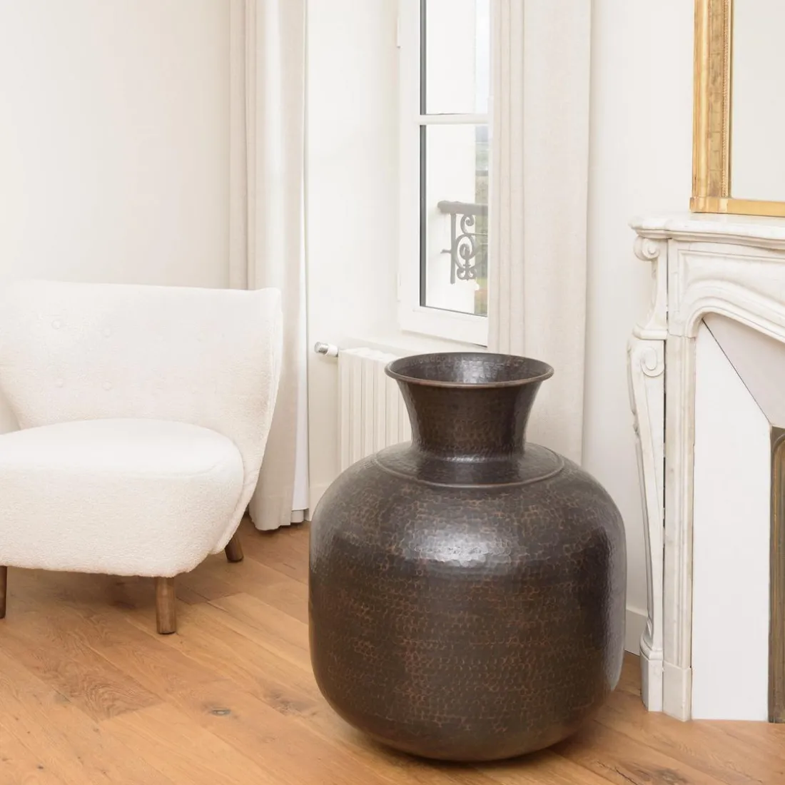 Caractéristiques Vase alu couleur cuivre noir antique effet martelé HONORE