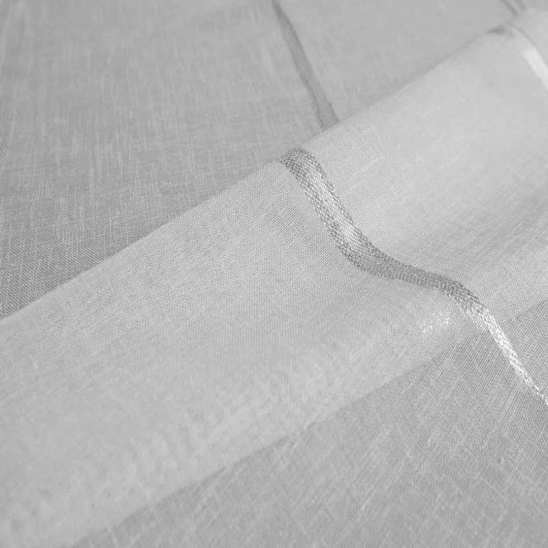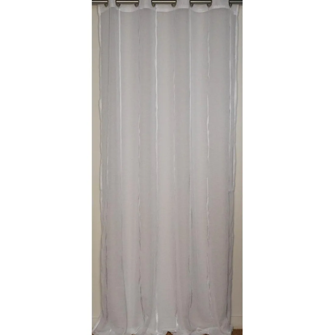 Le Voilage en Étamine Jacquard Blanc 140X260 cm LUMIERE se distingue par sa délicatesse. Sa couleur blanche en fait un passe-partout. Il porte des œillets gris.