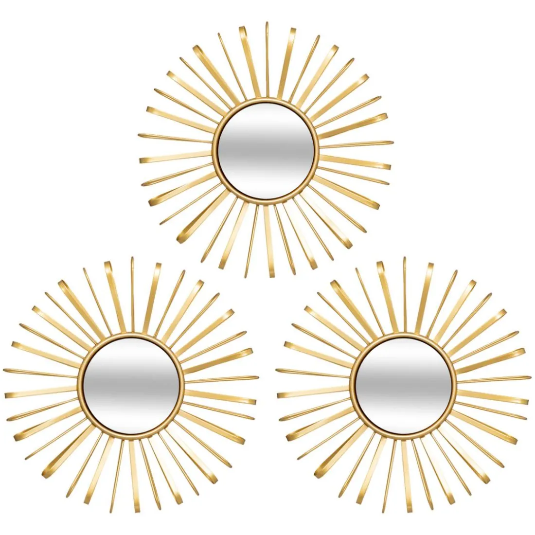 Offrez à votre intérieur une décoration murale tendance avec les 3 miroirs « Warren » doré de la marque 3S. x Home. Avec leur couleur Doré lumineuse, ils ajoutent une touche chic et sophistiquée à votre pièce. De dimensions modestes, 24.2 cm de hauteur et 24.5 cm de longueur, ces miroirs se distinguent par leur style Scandicraft plein de charme. Fabriqués à base de métal, leur structure solide garantit durabilité et robustesse. L’assemblage des trois miroirs forme une figure géométrique attrayante, les bordures métalliques ajoutant une esthétique raffinée à l’ensemble.