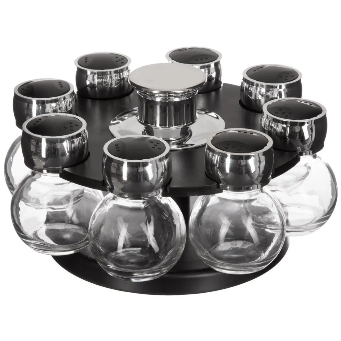 Donnez une touche de modernité à votre cuisine avec ce set de 8 Pots à Épices de marque 3S. x Home. Présentés sur un support rotatif de couleur noir pour un accès facile et une organisation optimale, ces pots sont réalisés en verre, matière phare pour conserver vos épices. Chaque pot a une hauteur de 12.5 cm et une longueur de 22.5 cm, idéal pour ranger une multitude d’épices sans encombrer votre espace de préparation. Le noir du support contraste parfaitement avec le transparent des pots, apportant à l’ensemble une touche chic et tendance.