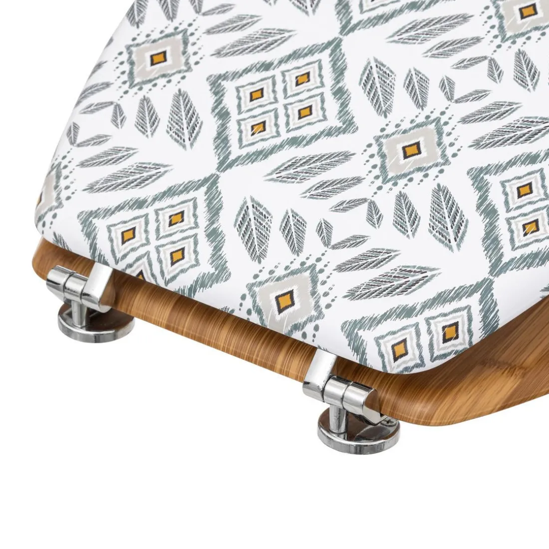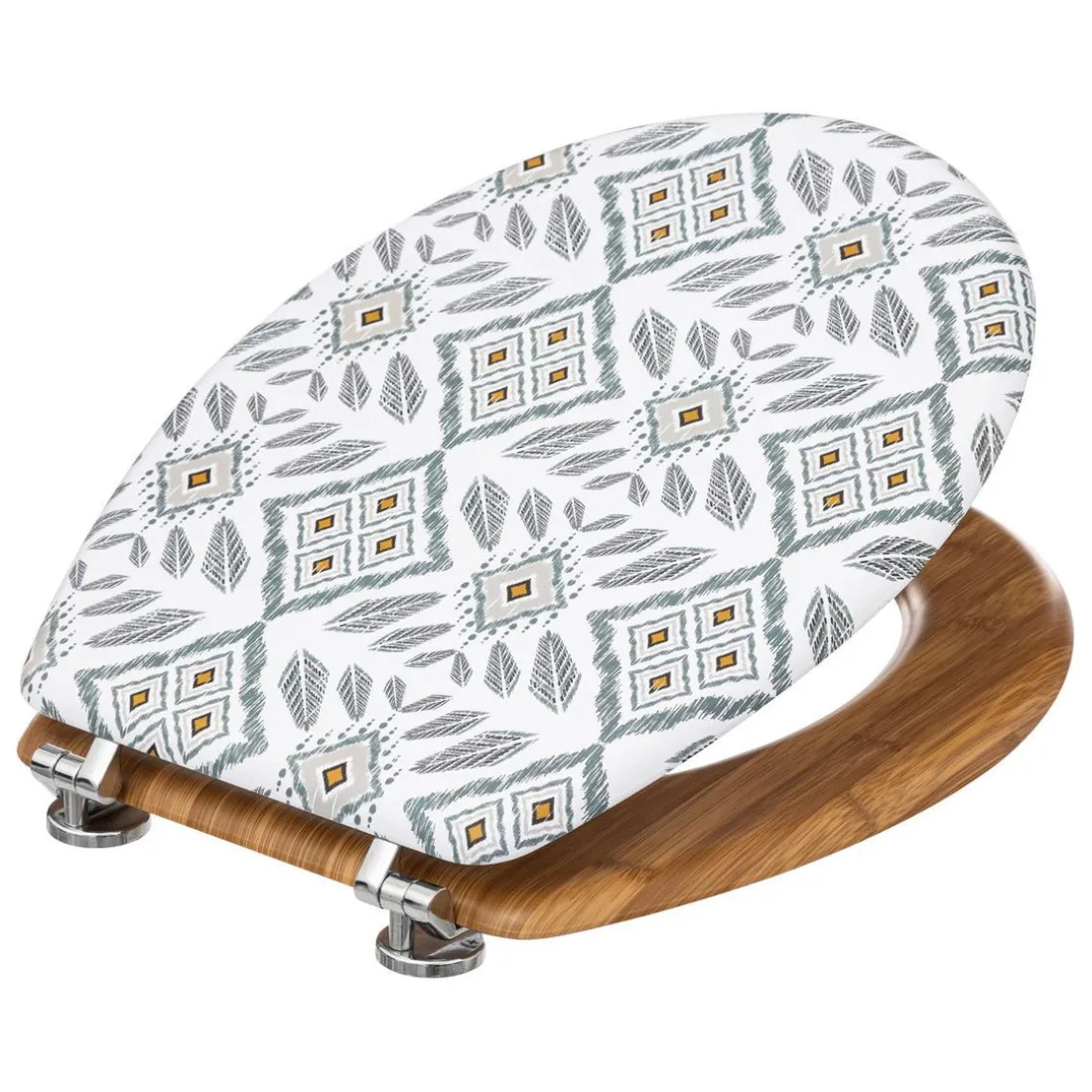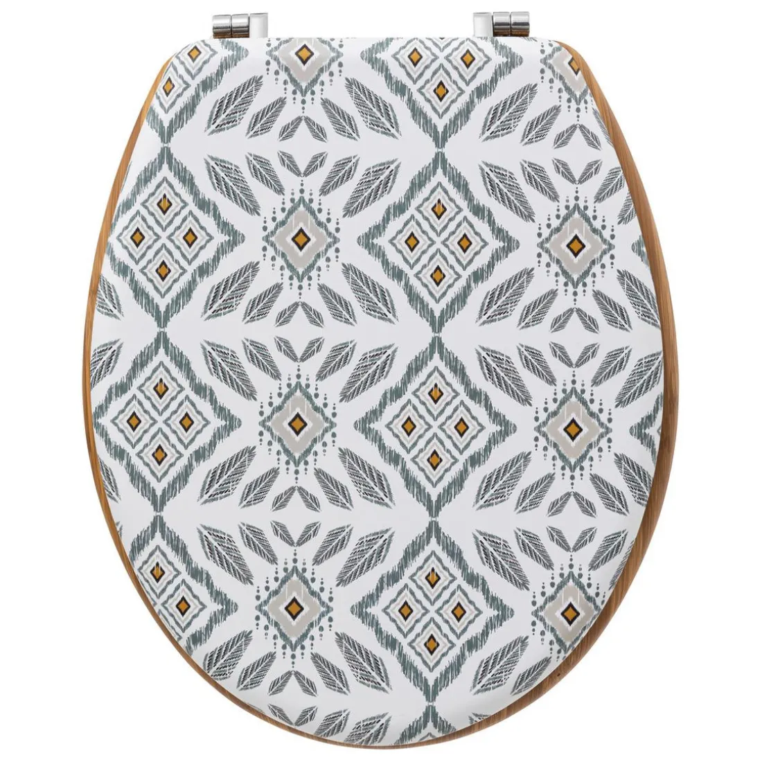 Cet Abattant est un produit élégant de la marque 3S. x Home. Il se distingue par ses dimensions généreuses de 42,5cm de longueur, 36cm de largeur et une hauteur de 5,5cm. Comportant une variété de nuances grises et blanches, il dispose d’un motif rappelant un style tribal moderne. Le dessin hapache apporte une touche unique qui fait de cet accessoire un élément déco à part entière pour la salle de bain.