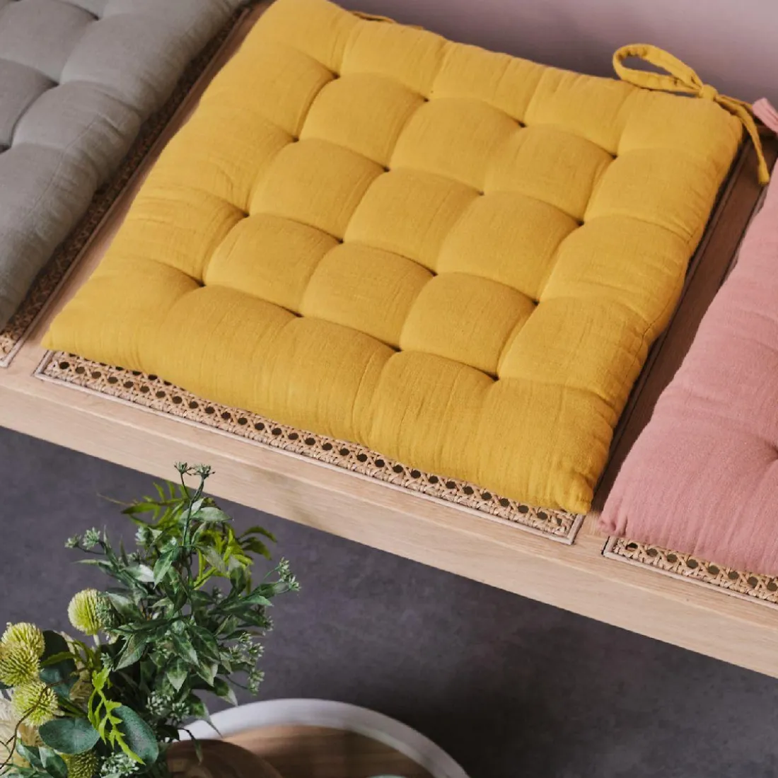 Caractéristiques Assise matelassée INDIAN FLOWERS 40 x 40 cm en gaze de coton Ocre