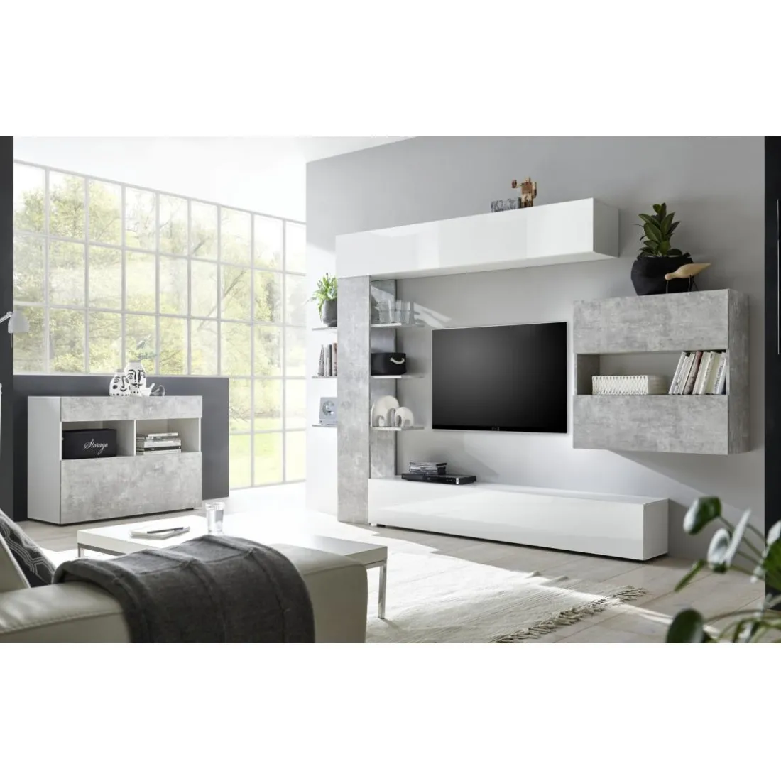 Caractéristiques Buffet 1 tiroir et 1 abattant blanc et facades décor beton