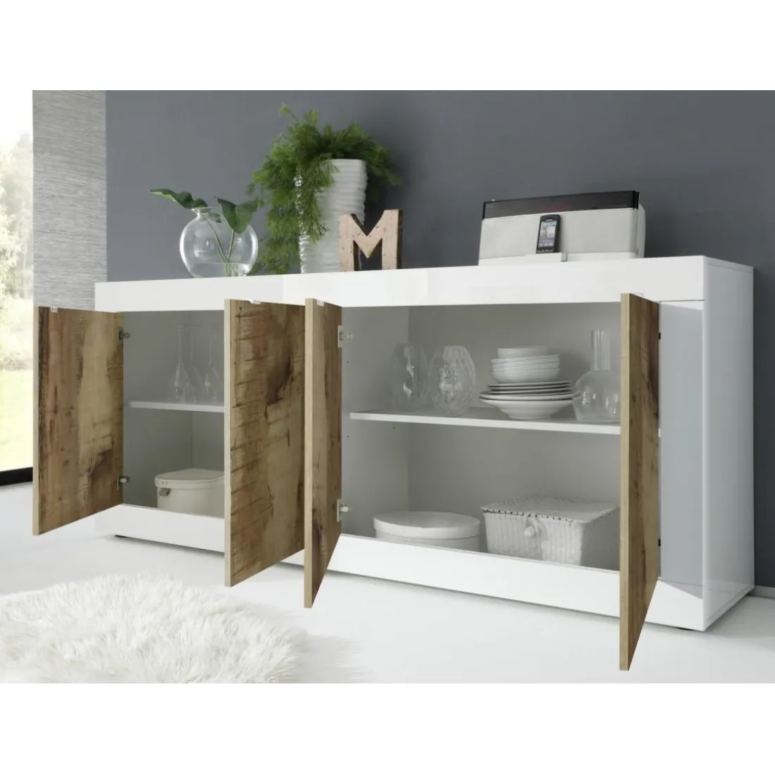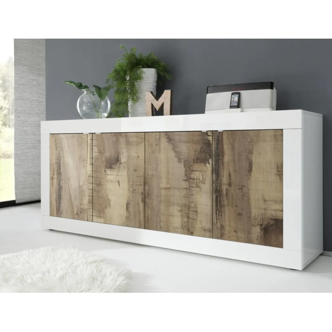 Caractéristiques Buffet 4 portes blanc et décor chene pero