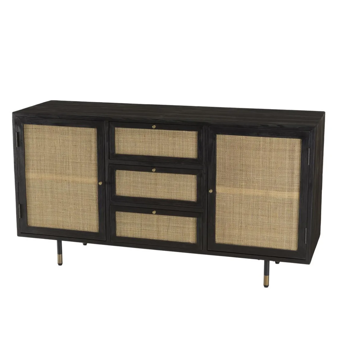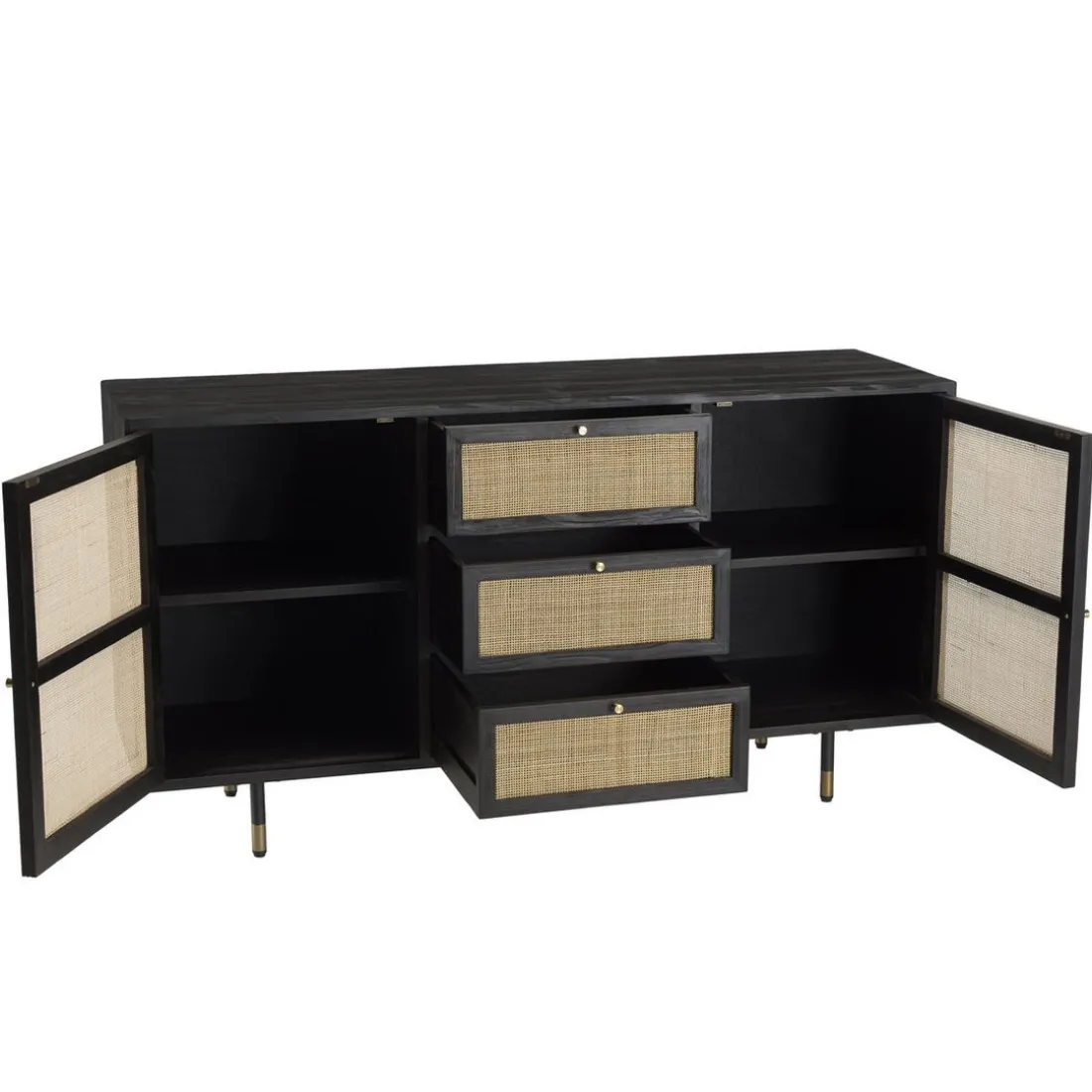 Caractéristiques Buffet Noir 2 Portes Coulissantes 1 Porte Abattante Cannage YANIS