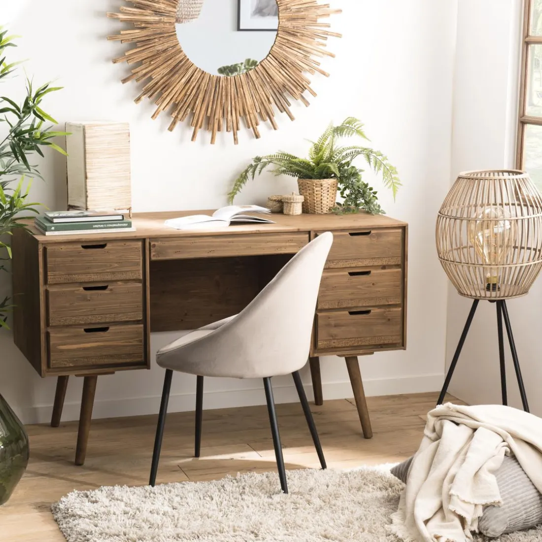 Caractéristiques Bureau ANDY Scandi Bois 6 Tiroirs Sapin