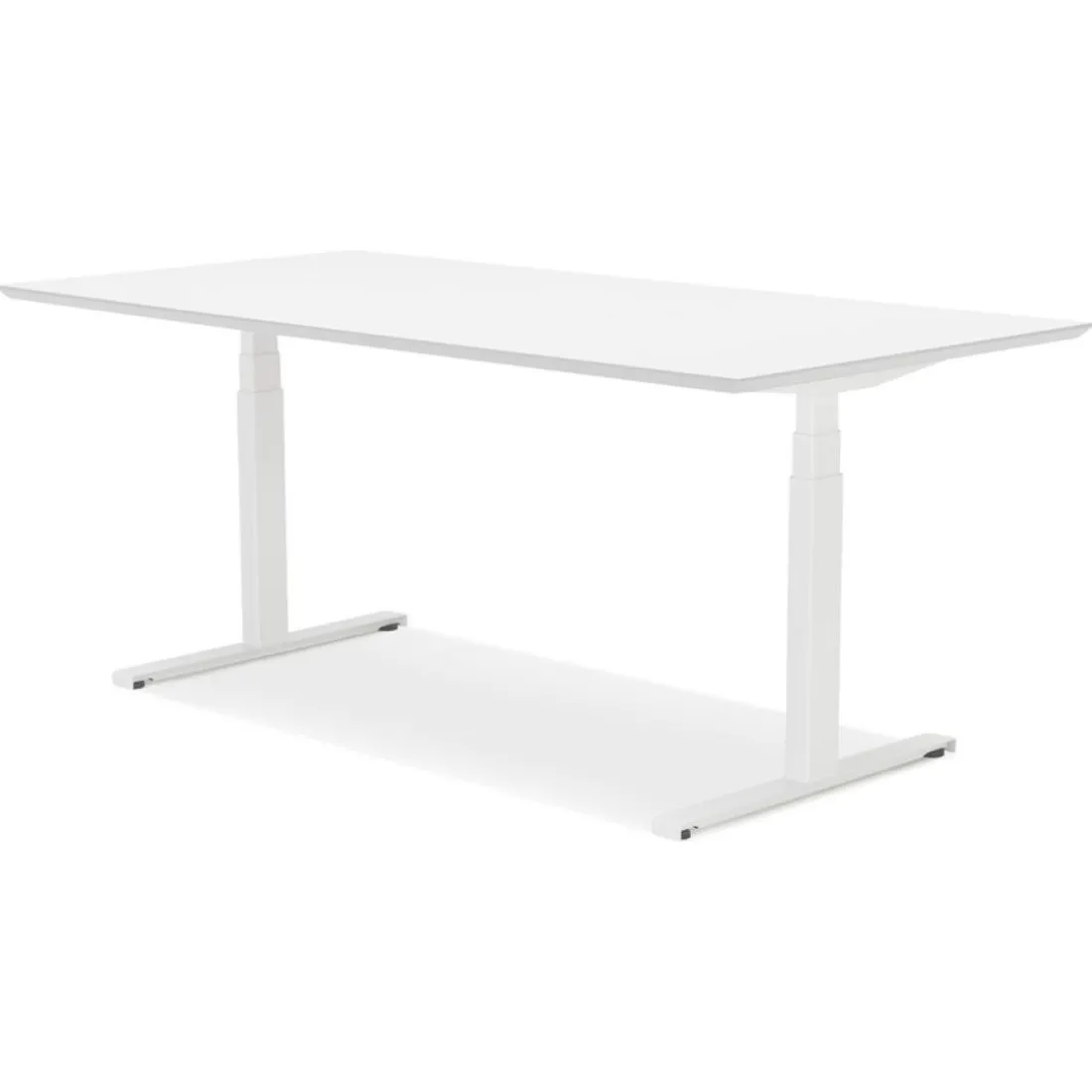 Caractéristiques Bureau assis-debout électrique ‘BIONIK’avec plateau en bois et métal blanc