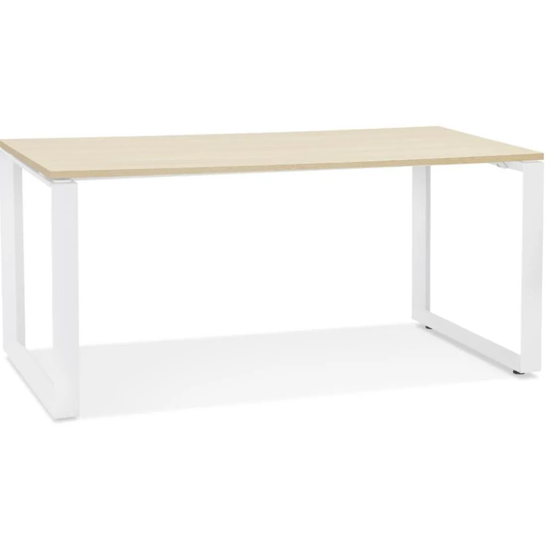 Caractéristiques Bureau droit design ‘BAKUS’ en bois finition naturelle et métal blanc