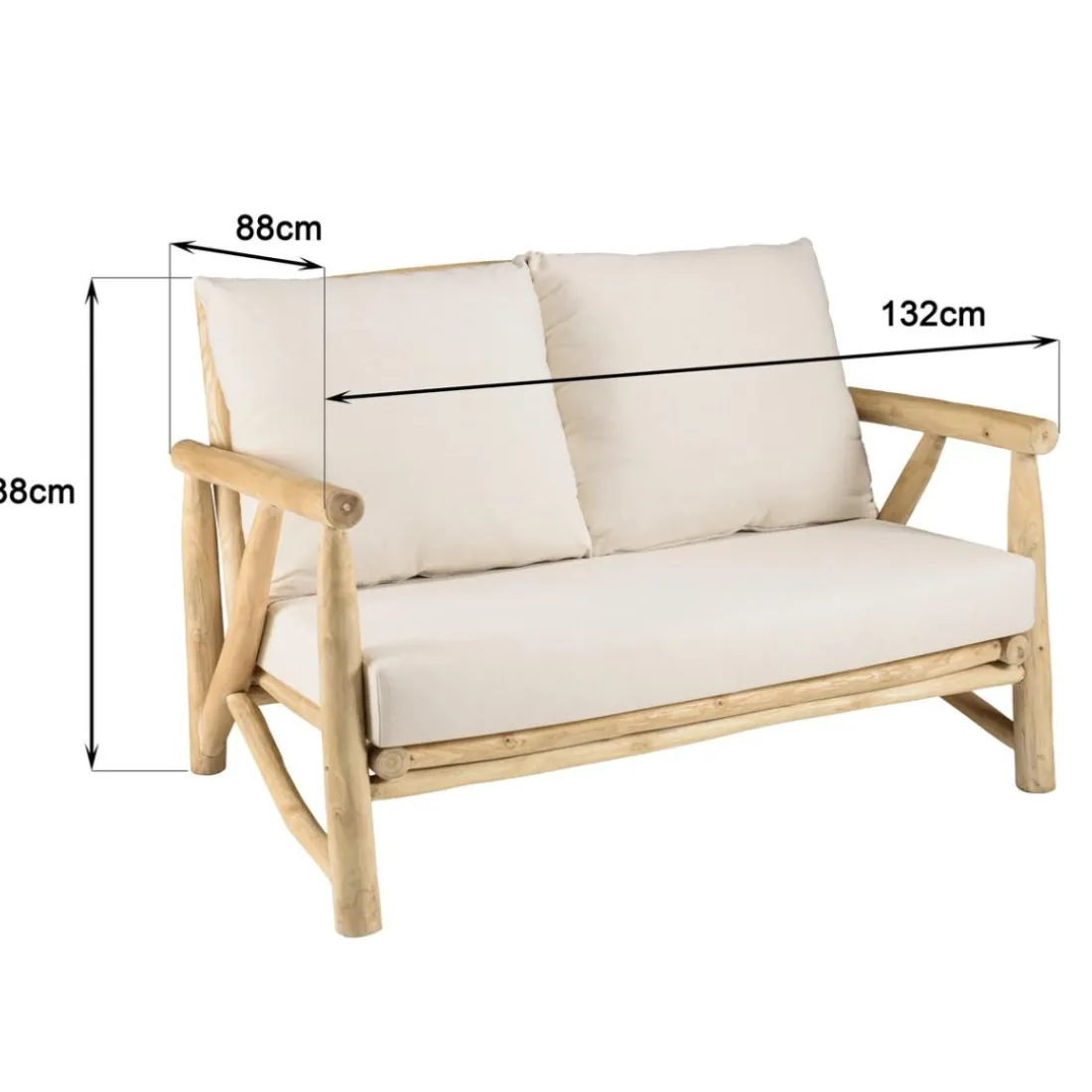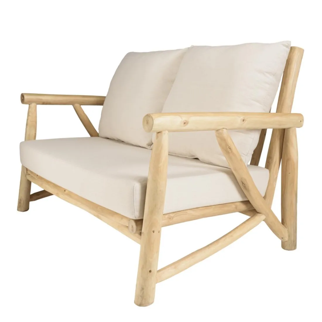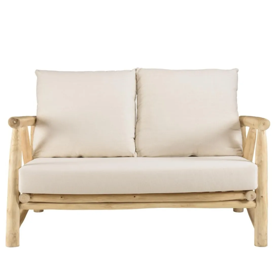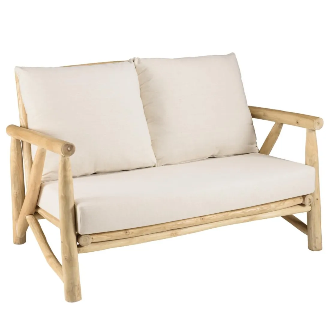 Le canapé 2 places MADURA de la marque MACABANE est un modèle éco-responsable fait en branches de Teck naturel. Son dossier au design organique et ses coussins blancs en tissu confortables font qu’il s’intègre parfaitement dans un décor chic et naturel. Les lignes simples de ce meuble soulignent son caractère moderne, alors que le teck évoque un brin d’exotisme.