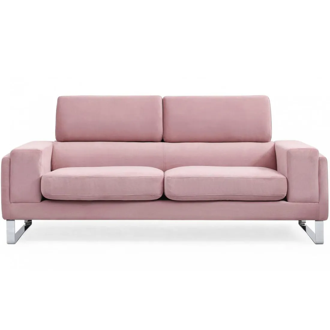 Le Canapé 3 places en Velours côtelé Rose GRAHAM vous offrira le confort que vous méritez grâce à ses larges accoudoirs et son dossier matelassé pour un meilleur maintien. Avec l’alliance du piétement en métal design et du velours, osez l’associer avec une table basse contemporaine.