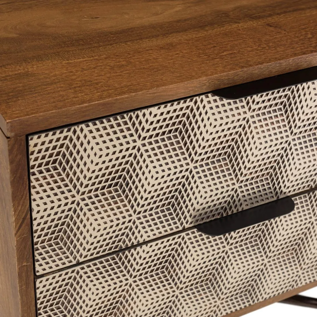 Caractéristiques Chevet en bois de manguier 2 tiroirs motifs ethniques dorés ALIX