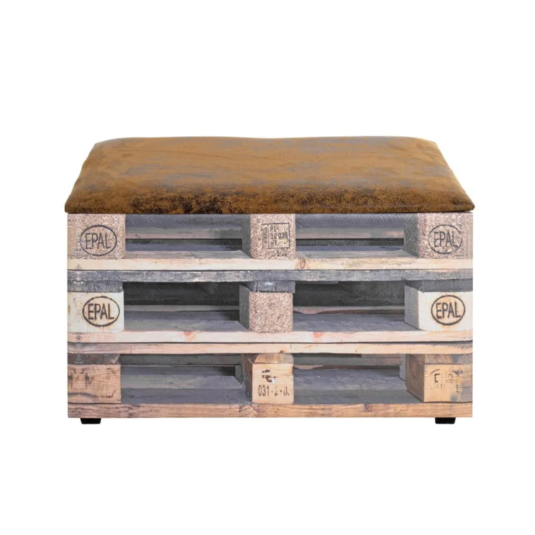 en MDF recouvert simili cuir imprimé du motif « Palette », assise en tissu textile rembourré marron, couvercle amovible