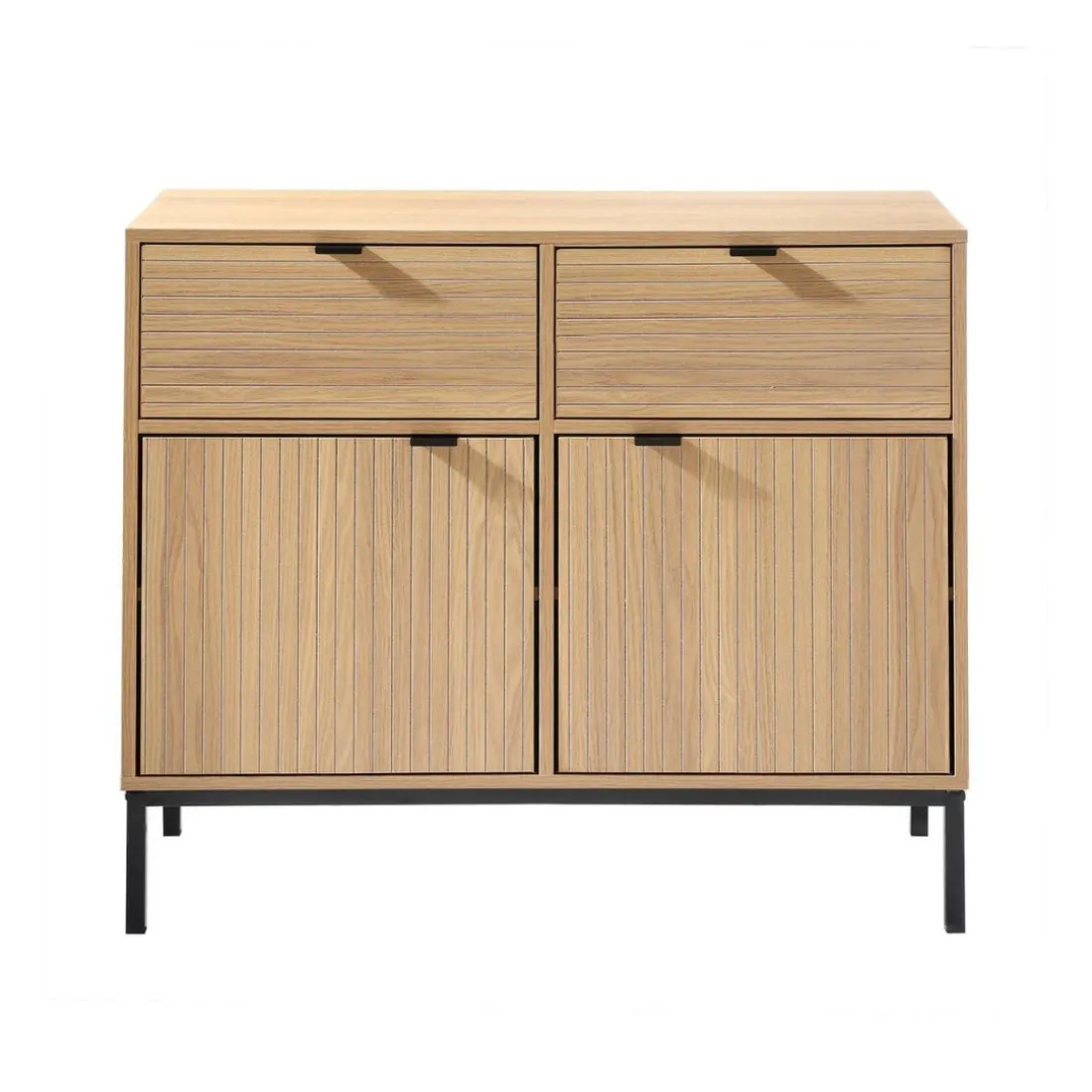 La Commode 2 Portes 2 Tiroirs Calicosy est une pièce de mobilier d’exception. Les façades rainurées lui confèrent une allure élégante et contemporaine. La construction en bois robuste garantit une durabilité accrue. La commode est équipée de deux portes ouvrant sur une zone de rangement spacieuse, complétée par deux tiroirs pour plus de praticité.
