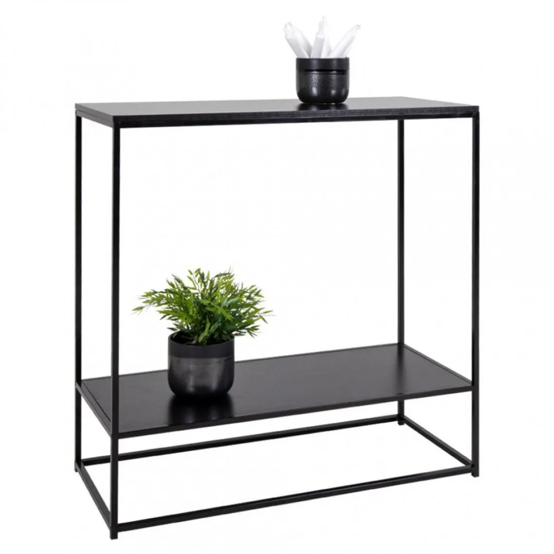Complétez votre décoration avec La console avec tablette en métal Noir PERKAR. Dotée d’une tablette inférieure, elle vous permettra d’exposer toute sorte d’objets. Sa structure en métal noir s’intégrera parfaitement dans n’importe quel style d’intérieur.
