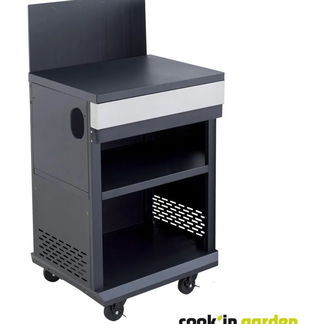 Cette desserte est ultra fonctionnelle et sert aussi bien de plan de travail ou de rangement que de table pour plancha à poser !