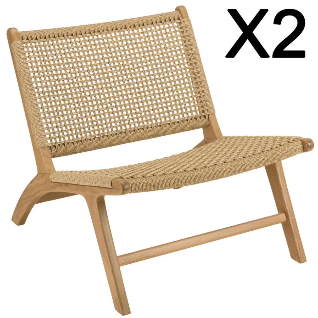 Caractéristiques Lot n°34 Salon de jardin teck recyclé rotin synthétique 2 personnes VALERIA