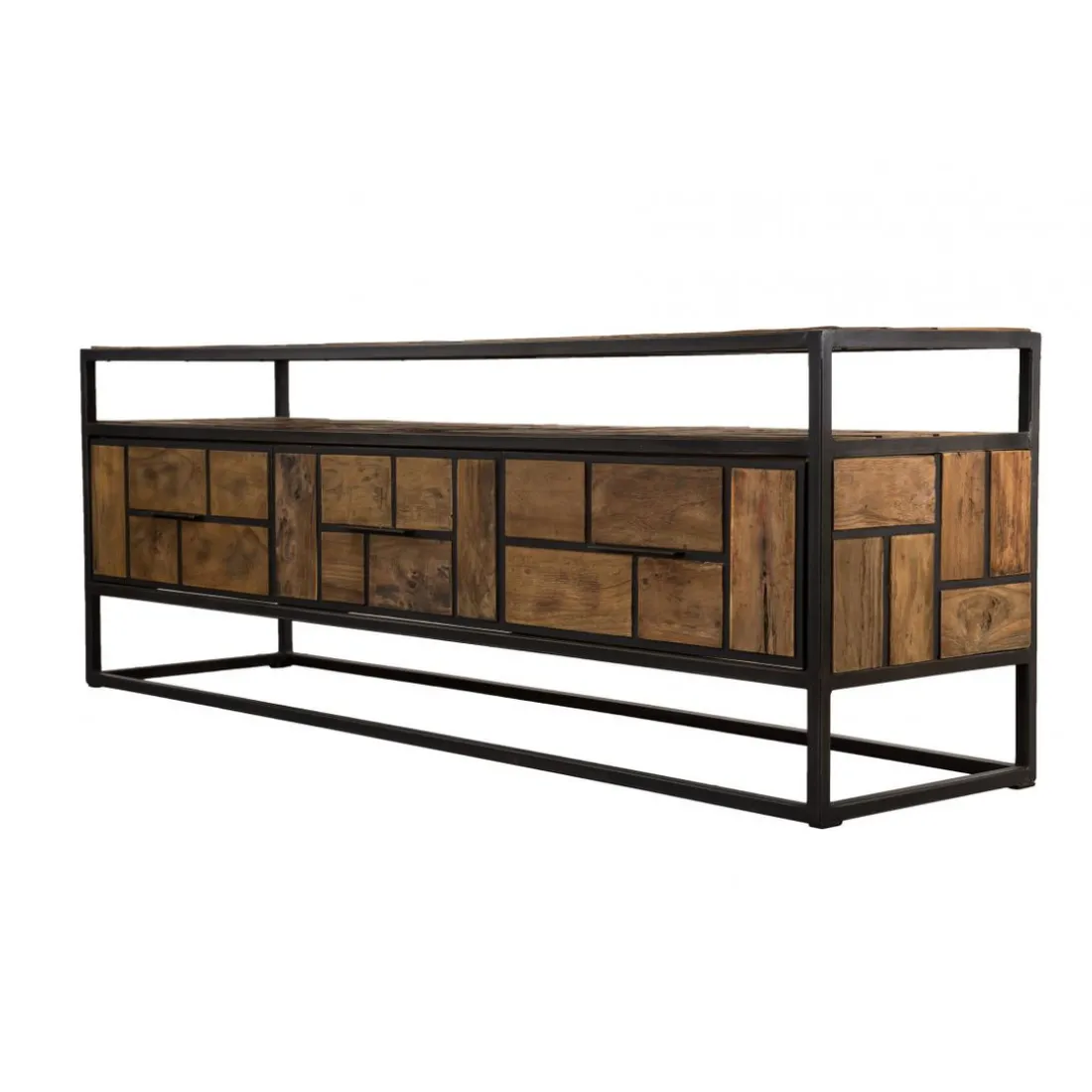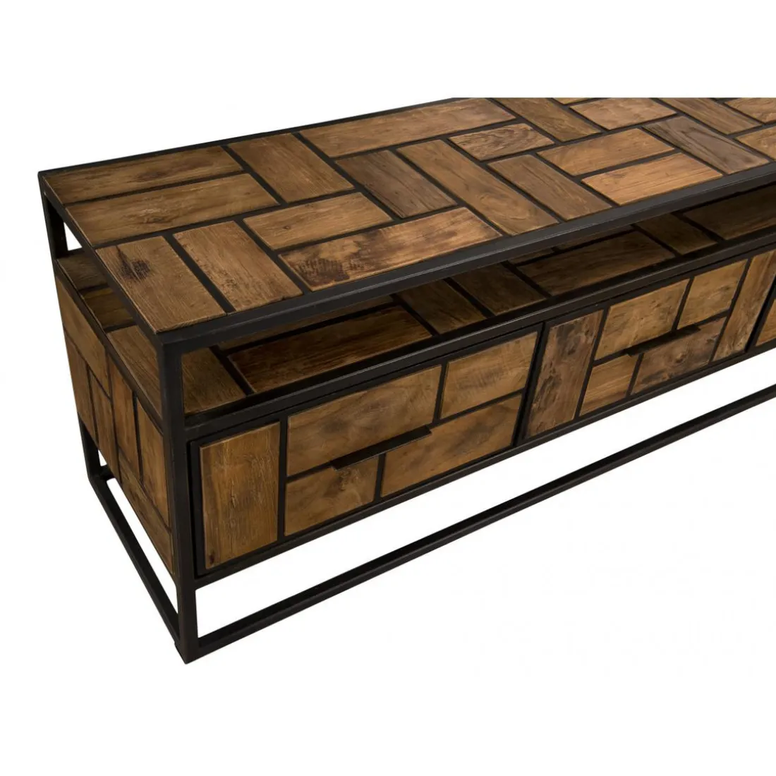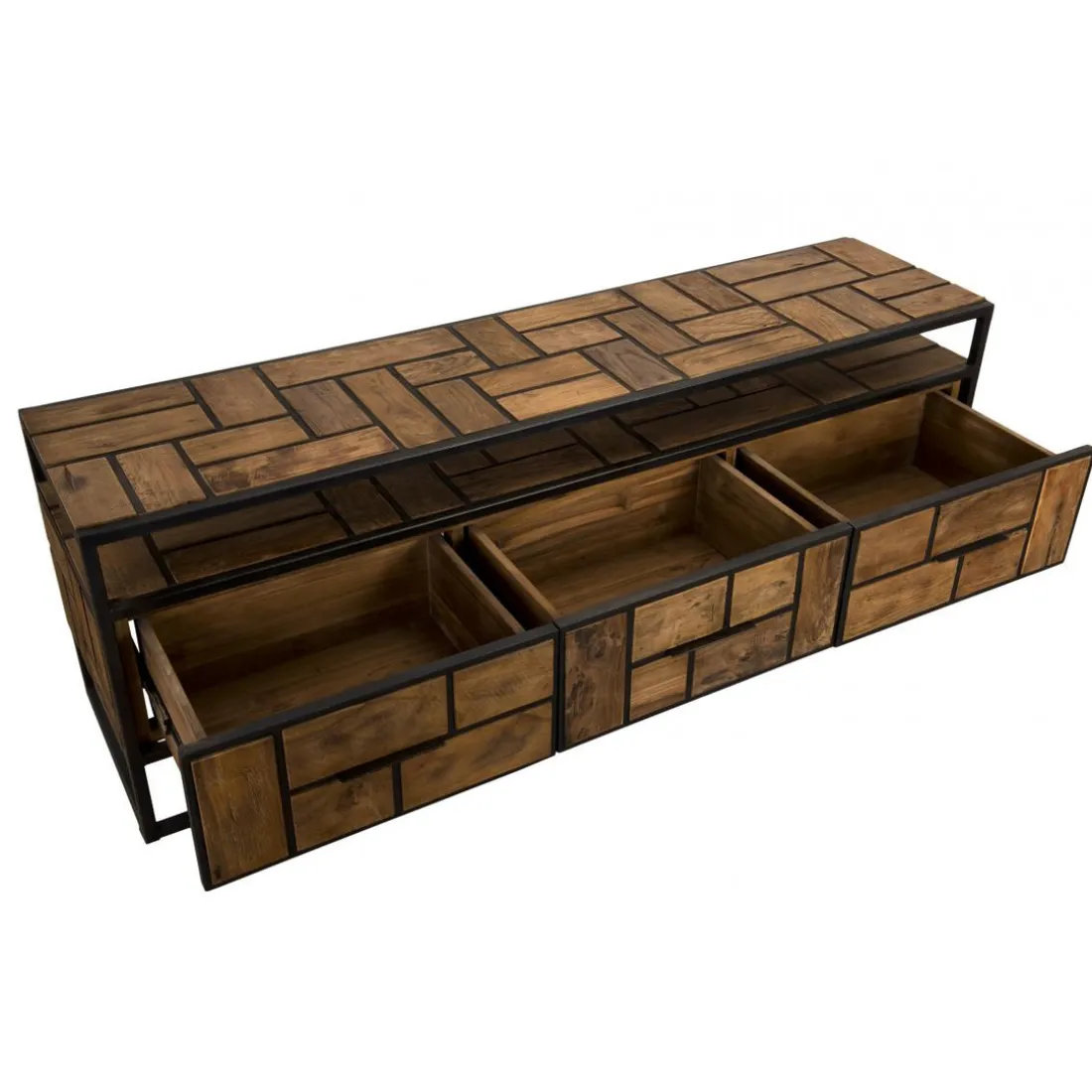 Caractéristiques Meuble TV ALIDA 3 Tiroirs 1 Étagère Bois Teck Recyclé Et Métal