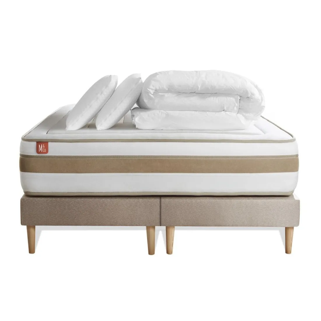 Le Pack prêt à dormir « Le Raffiné », de la marque Marmottes & Co, est un ensemble matelas sommiers qui vous offrent un confort inégalable. Le matelas comporte des ressorts ensachés, garantissant un soutien optimal, et une mémoire de forme BioVisco pour un confort somptueux. Double sommiers inclus pour une grande flexibilité d’utilisation. La couleur beige ajoute une élégance discrète à votre chambre tandis que la matière en tissu assure une durabilité exceptionnelle. Son style authentique se distingue par des finitions soignées et un design épuré. Ce pack agit comme le parfait invitation à une bonne nuit de sommeil.