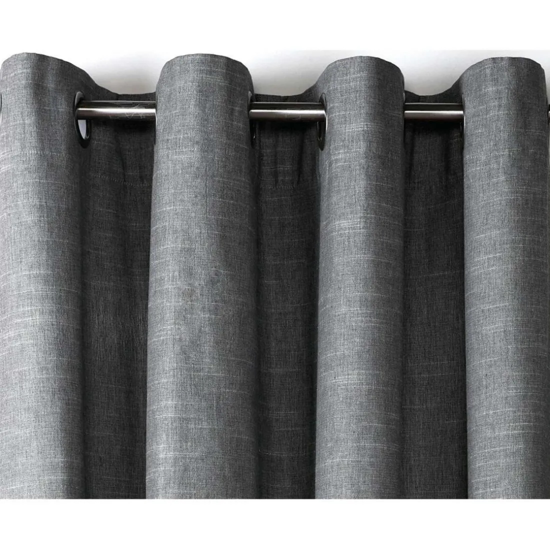 Promotion Rideau à oeillets unis occultants thermiques aspect chambray – Gris