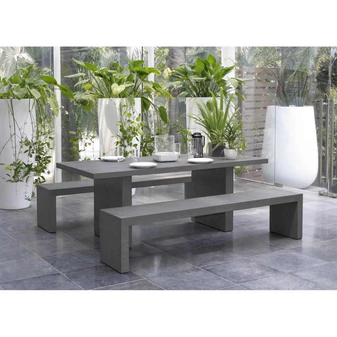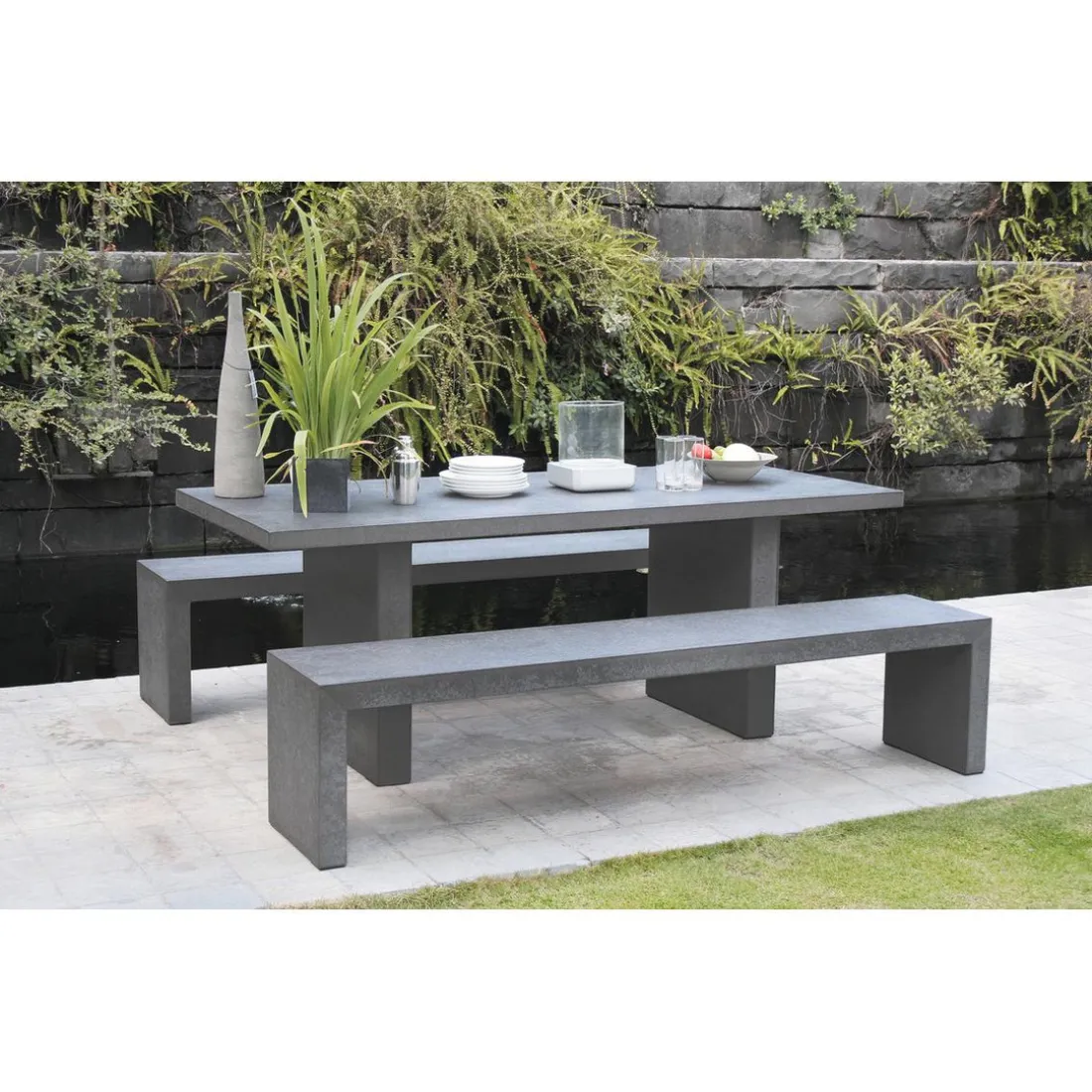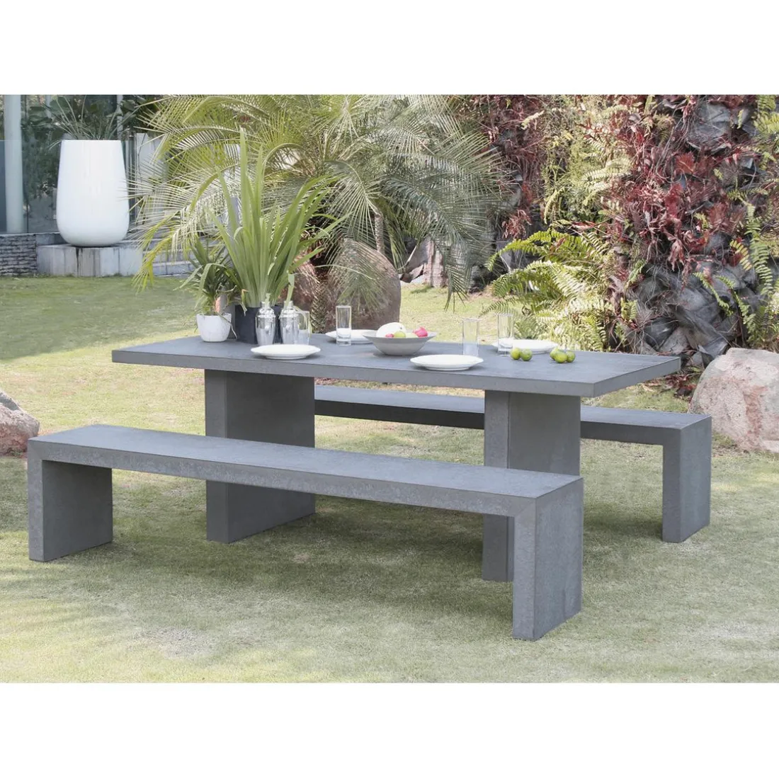 Set de table rectangulaire avec 2 bancs en fibre de ciment