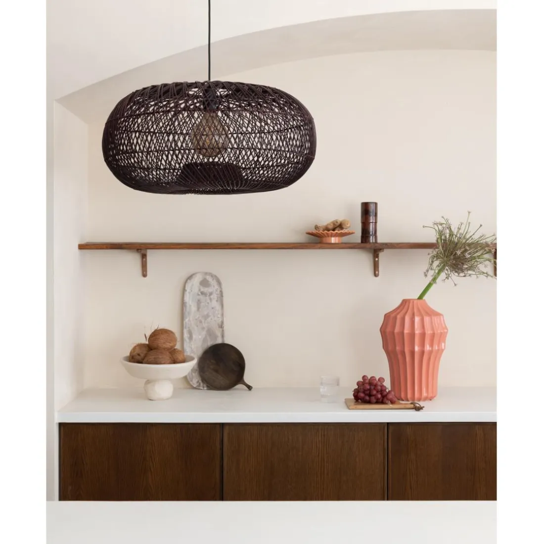 Découvrez la sublime suspension Arizona, un produit phare de la marque GOOD&MOJO. Avec un diamètre de 50cm et une hauteur de 23cm, ce luminaire est une véritable ode à l’authenticité. Confectionné en rotin, un matériau durable et naturel, il se distingue par son abat-jour au coloris rouge bordeaux, qui offre une touche de sophistication à votre intérieur. Son design est sublimé par des détails minutieusement travaillés, visibles sur l’image fournie. Idéale dans un salon ou une salle à manger, la suspension Arizona saura instaurer une ambiance chaleureuse et cosy.