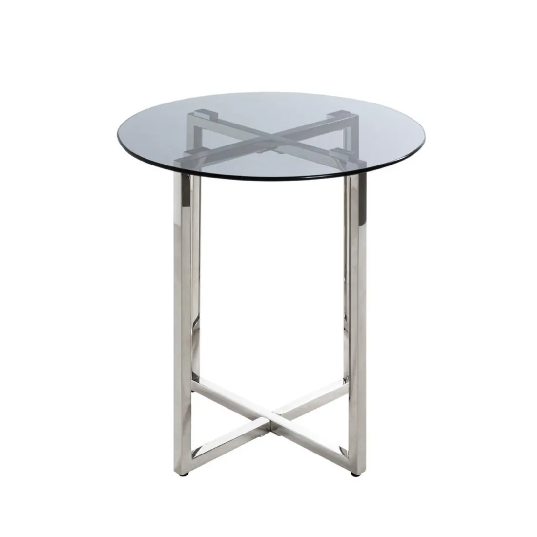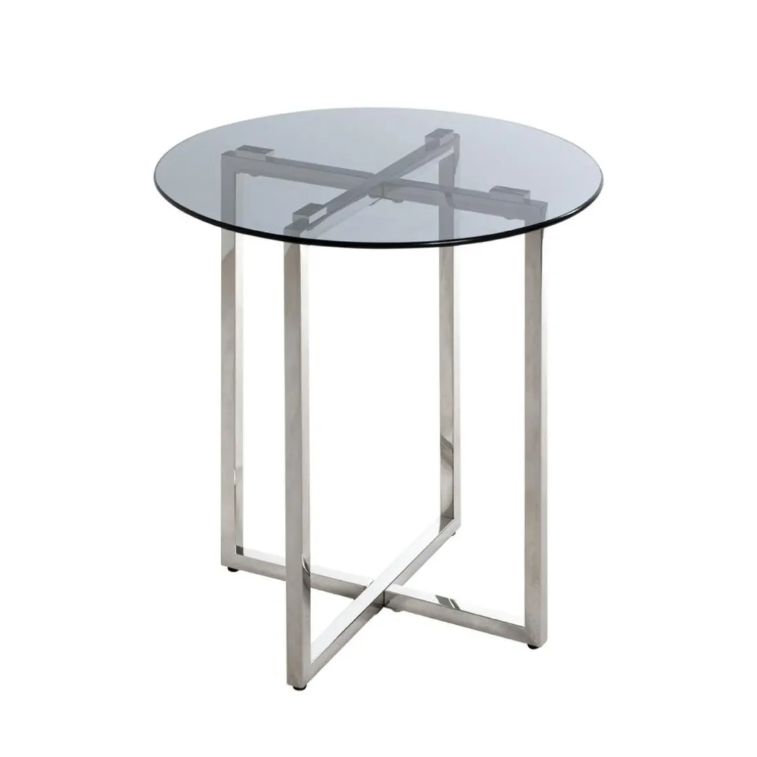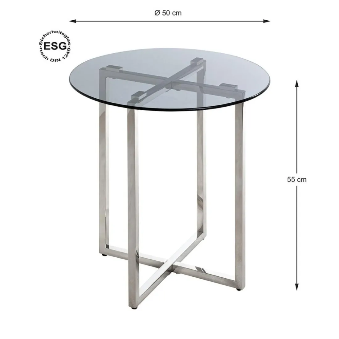 Structure en inox brillant, plateau en verre trempé teinté gris (Floatglass)