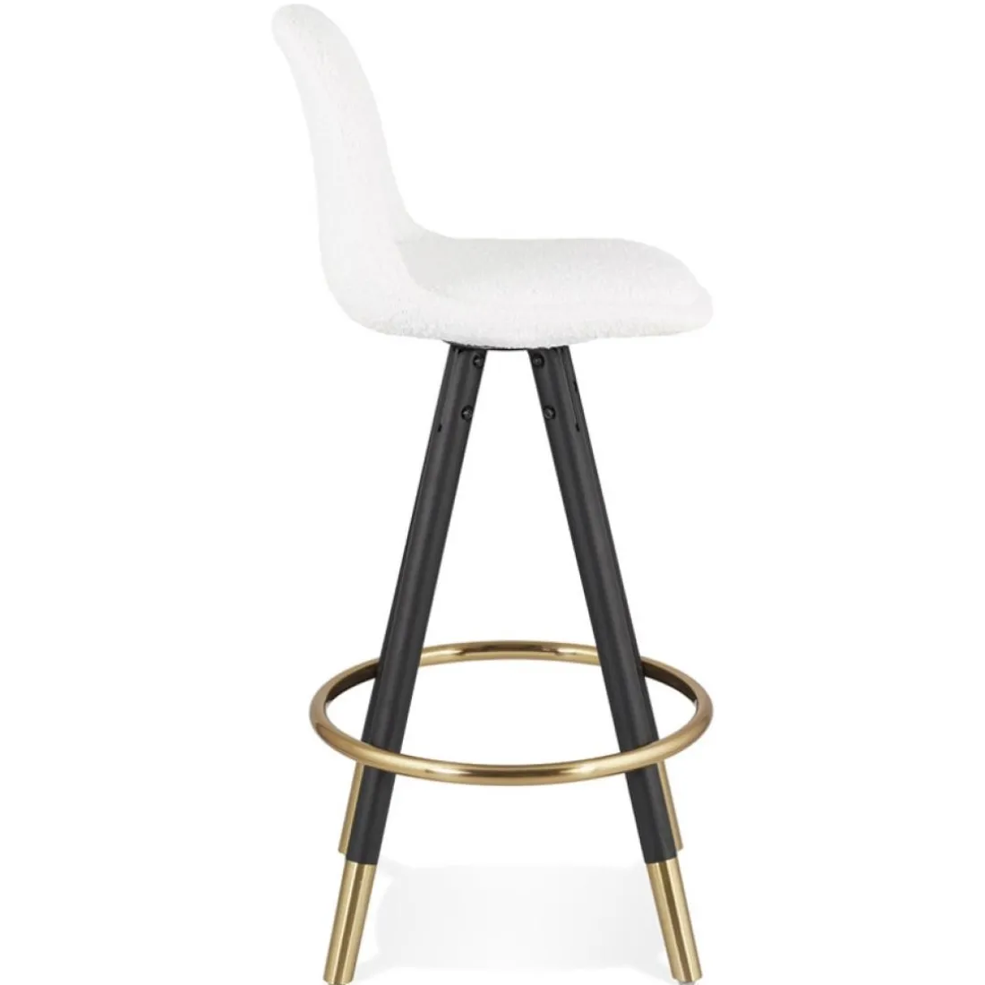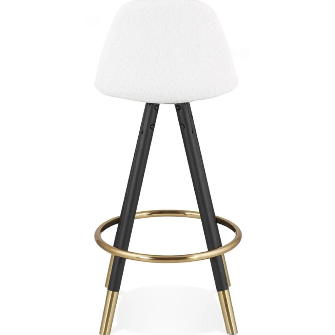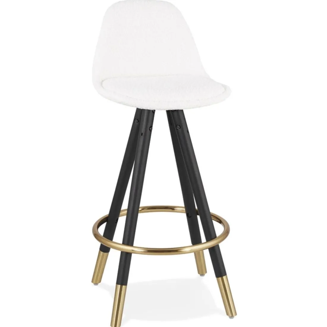 Caractéristiques Tabouret snack mi-hauteur ‘CLARISSE MINI’ en tissu bouloché blanc et 4 pieds en bois noir