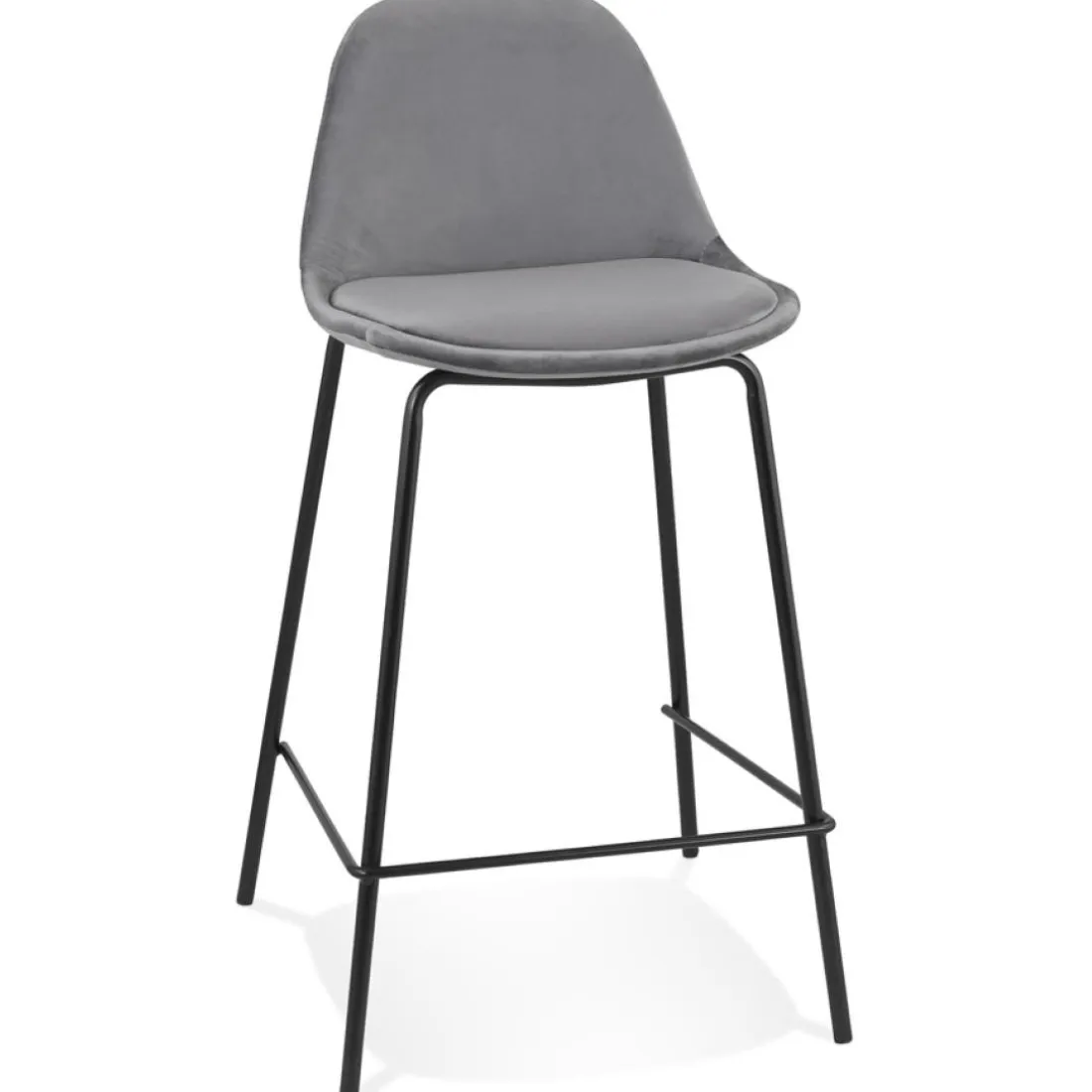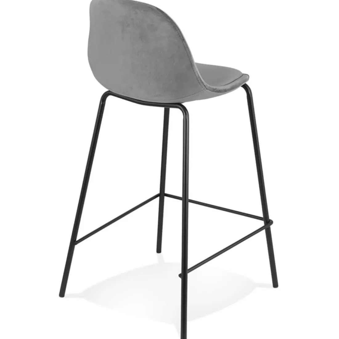 Caractéristiques Tabouret snack mi-hauteur ‘FENTON MINI’ en velours gris et pied en métal noir