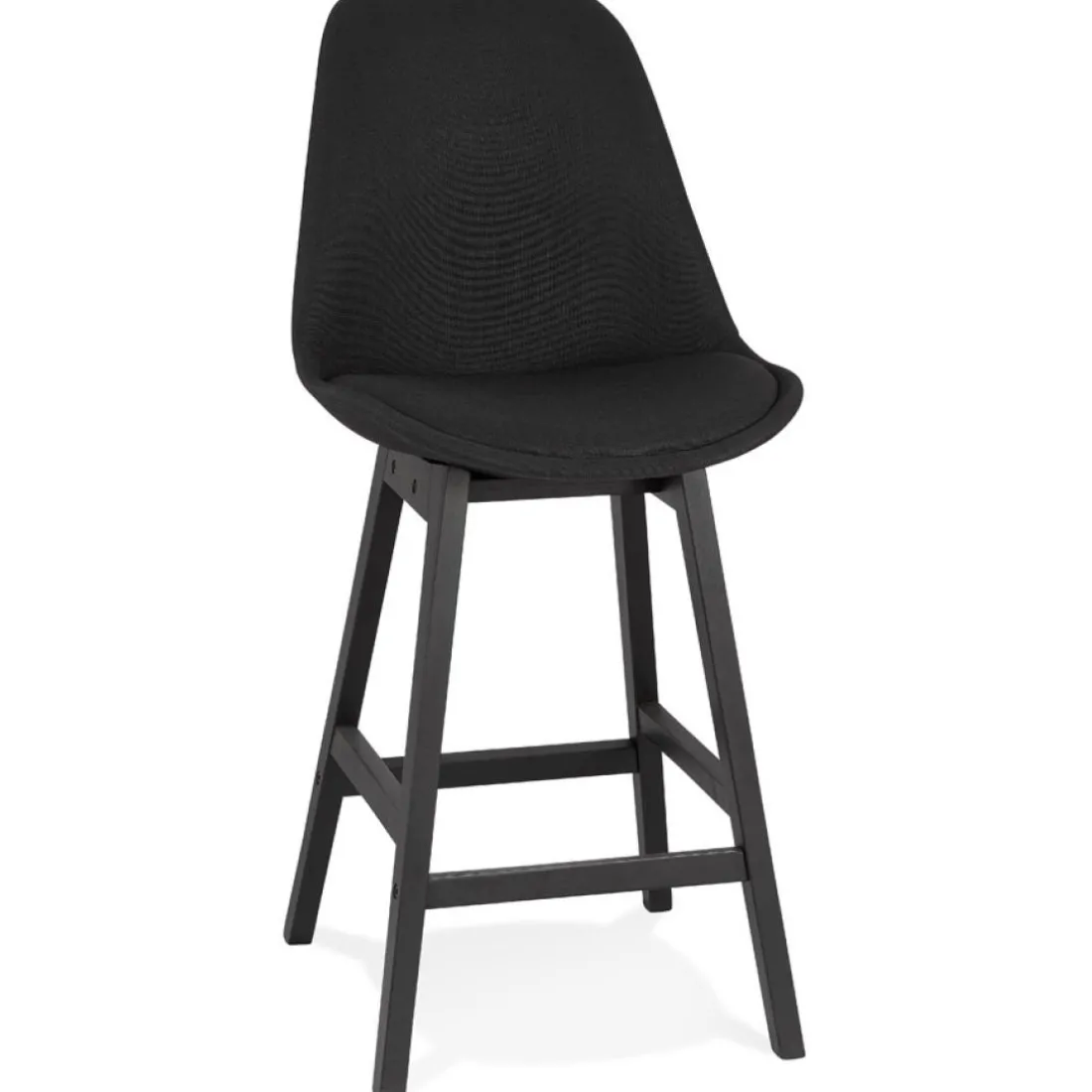 Caractéristiques Tabouret snack mi-hauteur ‘TERESA MINI’ design en tissu noir et pieds en bois noir